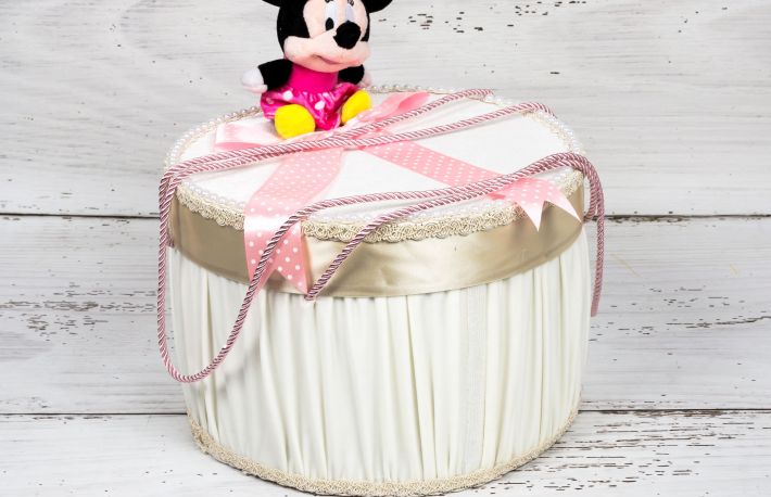 Cutiile pentru trusou au baza rotunda si sunt imbracate in material satinat. Daca la botez duci la biserica hainutele bebelusului in cutia preferata, dupa eveniment aceste accesorii botez vor deveni locul preferat pentru depozitarea diverselor lucrusoare din trusoul copilasului si nu numai.