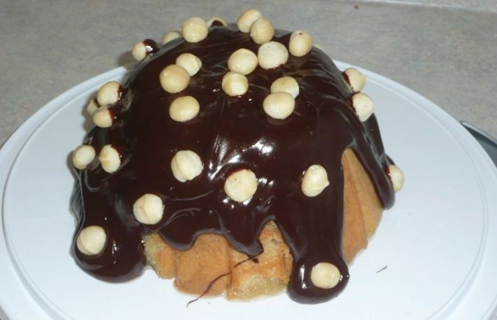Se imbraca cu piscoturi o forma de tabla cu peretii drepti. Pentru fund se taie piscoturile in forma de triunghi, asezand varful triunghiurilor in mijlocul formei.