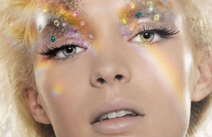Aplica putin sclipici pe pleoape si pe obraz pentru un look diafan.