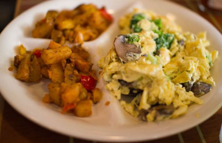 Se fierb cateva oua tari, se curata, se taie felii, se asaza pe o farfurie fierbinte.