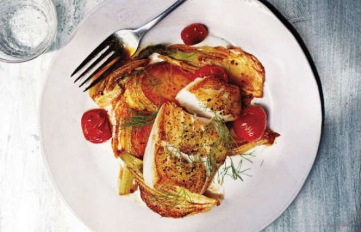 Astazi, iti prezentam o retete speciala de peste. Este vorba despre cod cu cartofi, fenicul si rosii la cuptor. Minunatia culinara se prepara in cateva minute si este potrivita pentru o cina sanatoasa si satioasa.