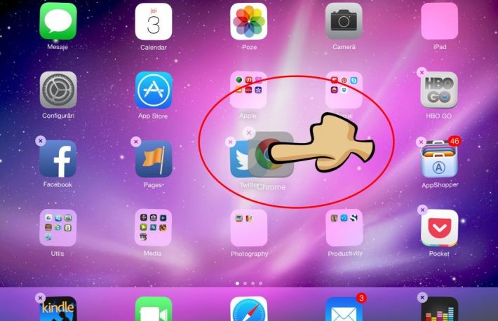 Repeta pasii de mai sus, pentru a muta mai multe pictograme in folderul creat. Pentru a adauga o pictograma unui folder creat, muta pictograma selectata deasupra folderului dorit.