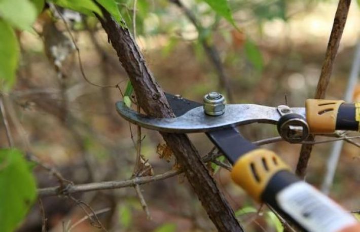 - indeparteaza lemnul mort. Pentru butuci(formatiunile lemnoase mai groase), vei folosi un fierastrau. Pentru lastari, e suficient sa folosesti o foarfeca;